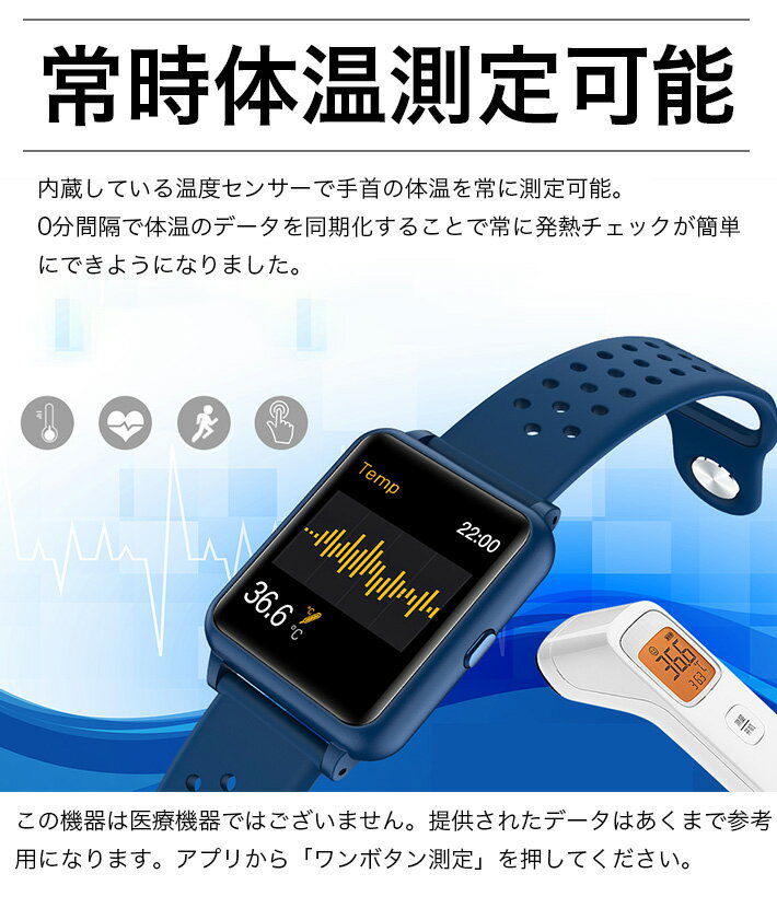 【常時体温測定】 2020年最新版スマートウォッチは内蔵している温度センサーで手首の体温を常に測定可能です。