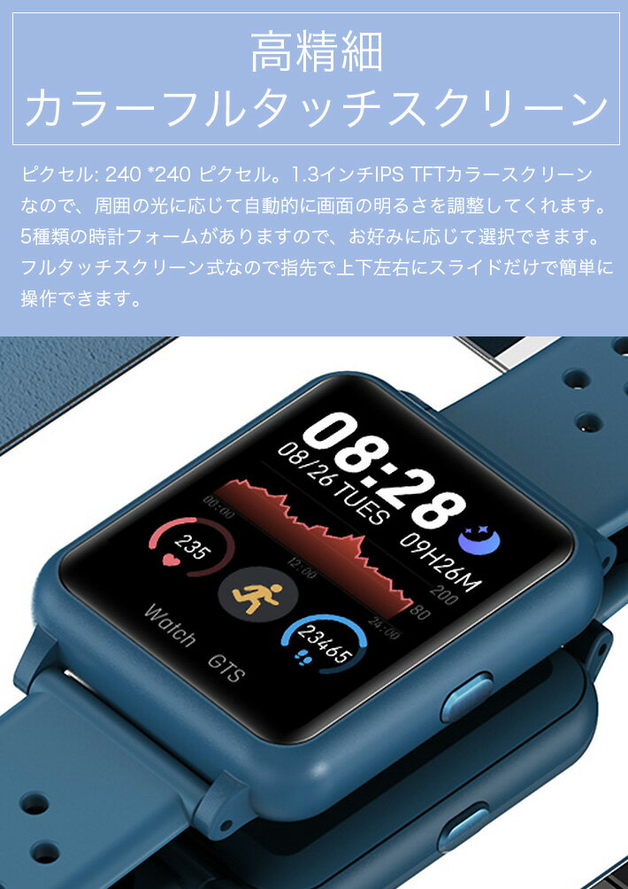 【商品詳細】 素材:本体素材:PC+ABS ハンド素材:シリコン スクリーン:1.3インチ IPSカラースクリーン【ウオッチサイズ】長さ40mm*幅30mm*厚さ18mmリストハンド:95-175mm本体重量:26.7gバッテリー容量:150mAh【対応機種】iOS 9.0以上、 Android 4.4以上BluetoothV4.0以上iPhone& Android&Type-C 【パッケージ内容】スマートウォッチ、充電ケーブル、多国語説明書(日本語含む)★